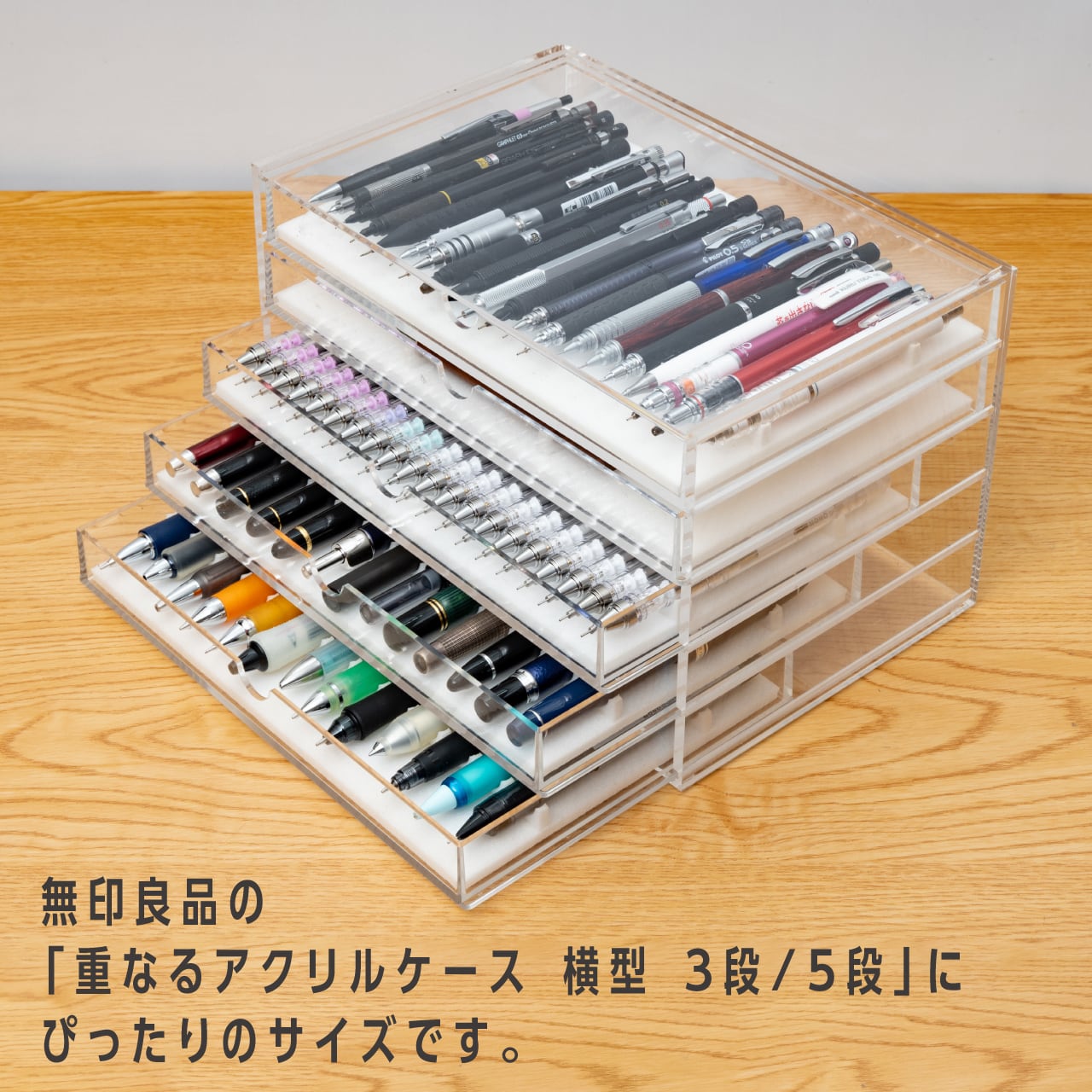 無印良品の「重なるアクリルケース 横型 3段/5段」にぴったりのサイズです。