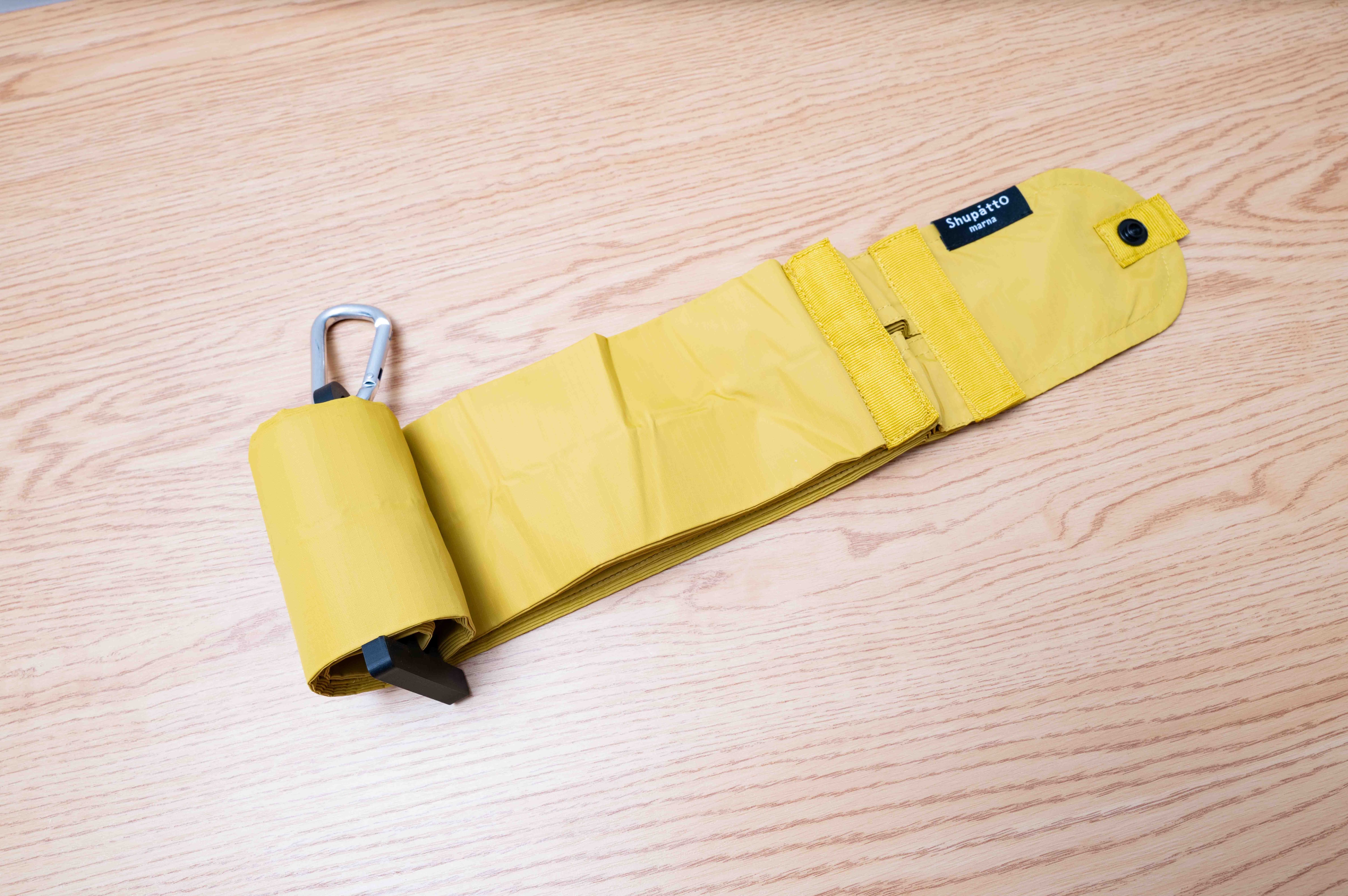 マーナのシュパットを吊り下げできるようにするホルダーです。ホルダーのスリットに通してから巻くことで、巻きやすく、落ちにくい構造になっています。