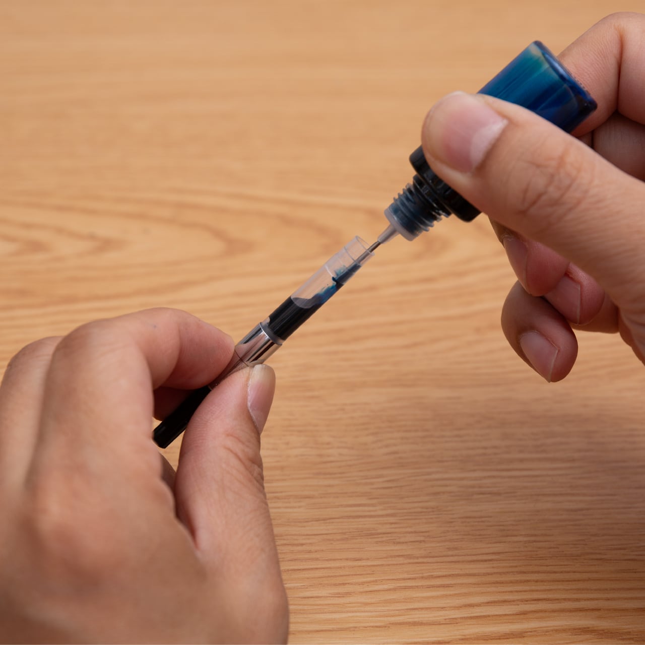 万年筆へのインク補充を劇的に速く、そして無駄なく行うことができるノズル付きボトル5個(充填用スポイト付)